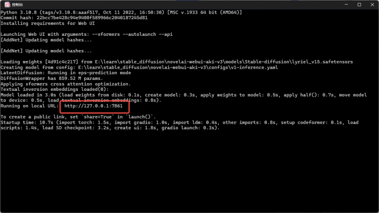 点击一键启动,会自动打开控制台,并自动在浏览器打开stable diffusion 页面