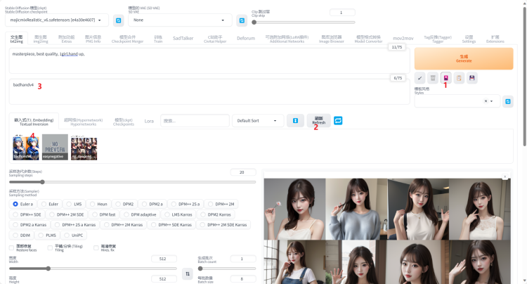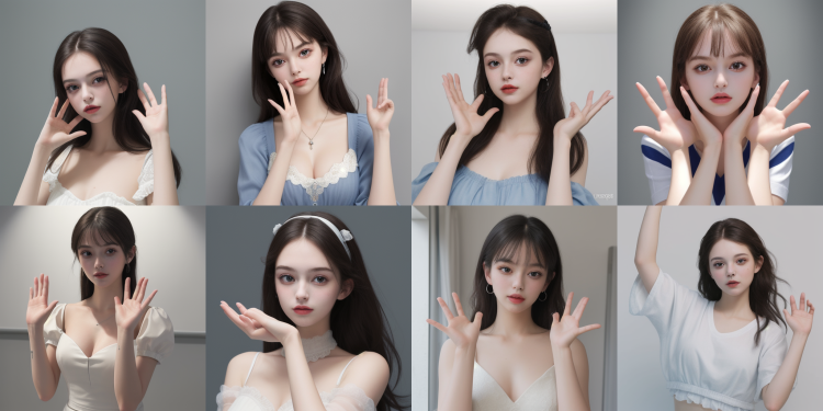都说AI画手画不好手, 看这些是我用stable diffusion生成的图片,小姐姐都很漂亮,但手都千奇百怪,破坏了图片的美感。